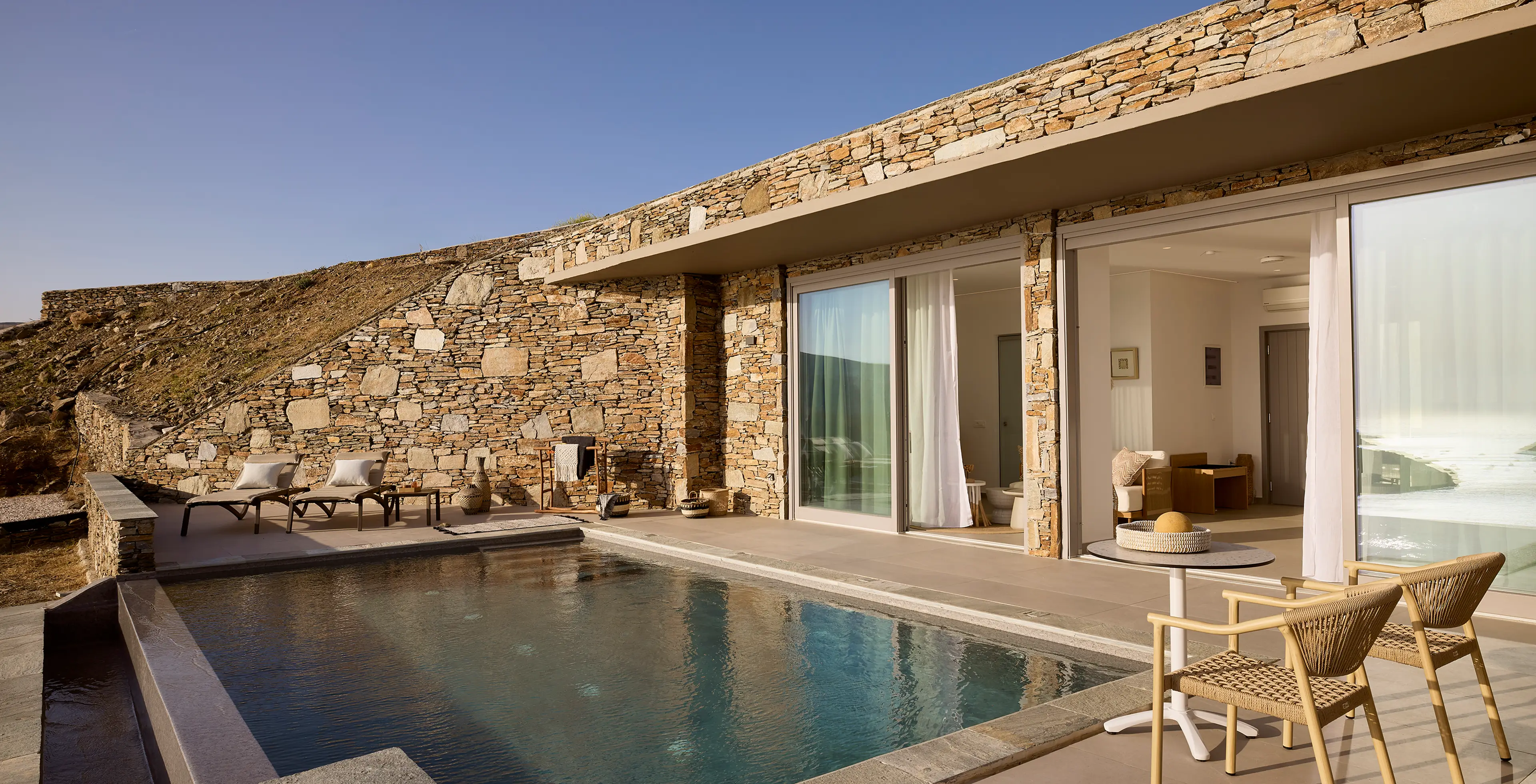 "A unique location with an unparalleled view of Kolona beach in Kythnos for all hours and, of course, amazing opportunities for photos. A fantastic tranquil place where you can completely isolate yourself in a very high-quality and modern environment, very different from what you're used to. Comfort, exceptional spaces, and nice quality amenities (wine, personal care products, good sheets and towels, and bathrobes, fruit) from the owners, along with daily cleaning and refreshing of the space. Done with taste and love. Bravo! 😊 - Nothing, everything was wonderful. You should go."