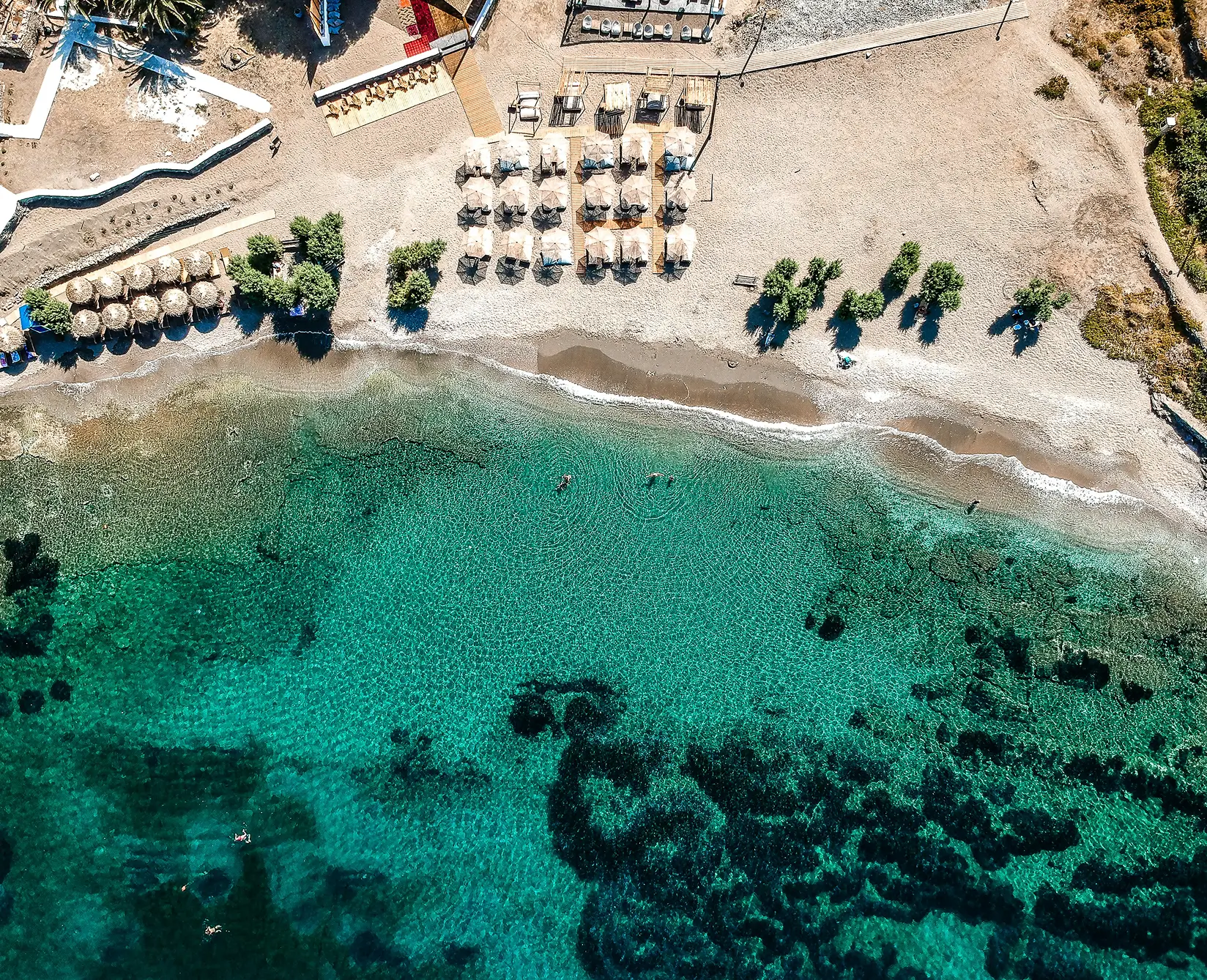 Unlike more remote beaches, Apokrousi offers a gentle balance between natural charm and modest convenience. There’s a handful of tamarisk trees offering shade, and two beach bars at either end serve refreshing drinks, simple meals, and a mellow, friendly vibe.Still, the beach retains an unspoiled feel, no loud music, no packed loungers, just enough to settle in without the distraction.