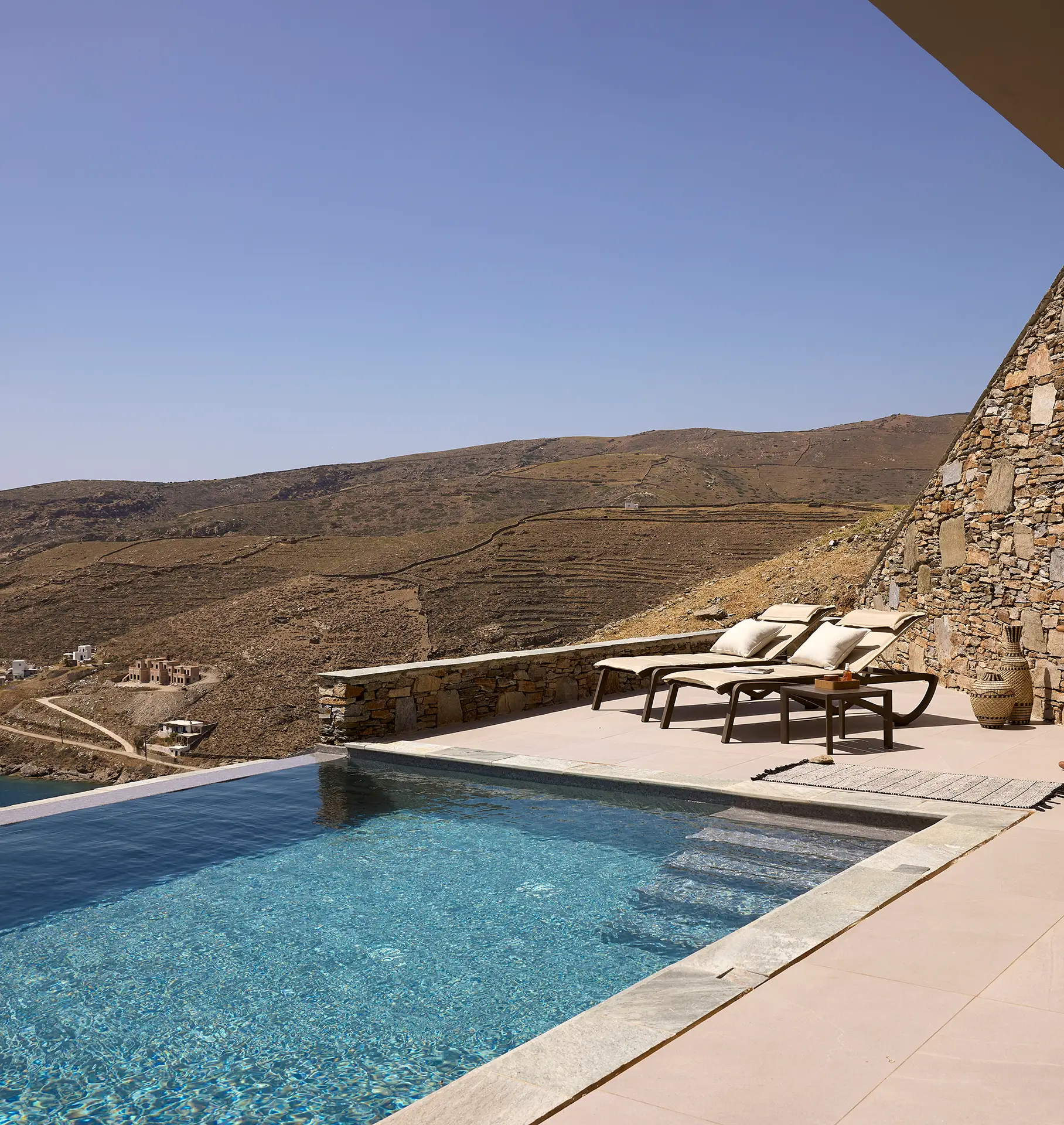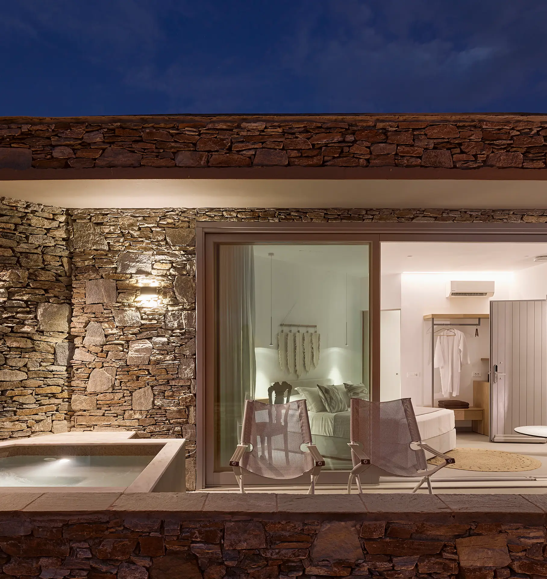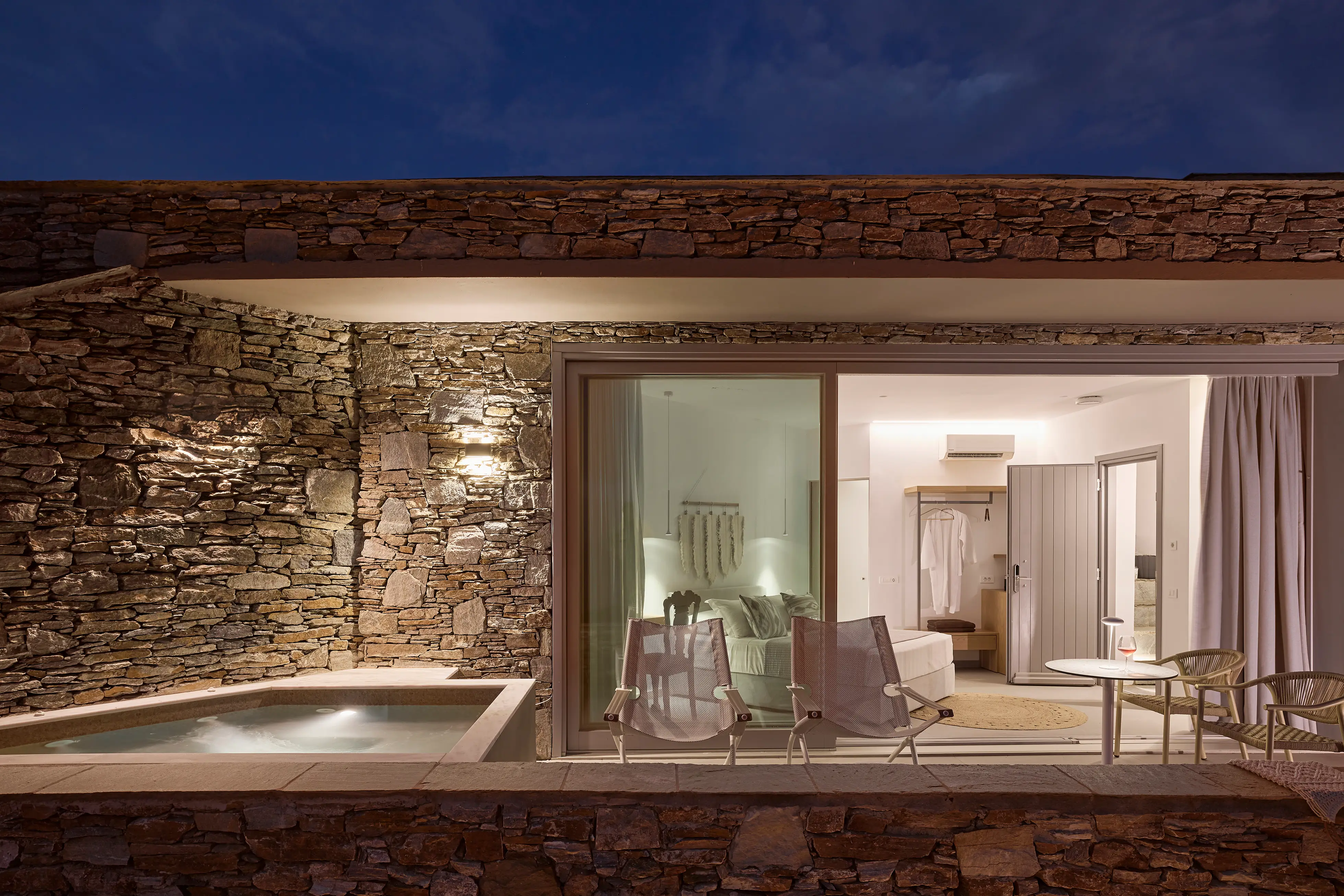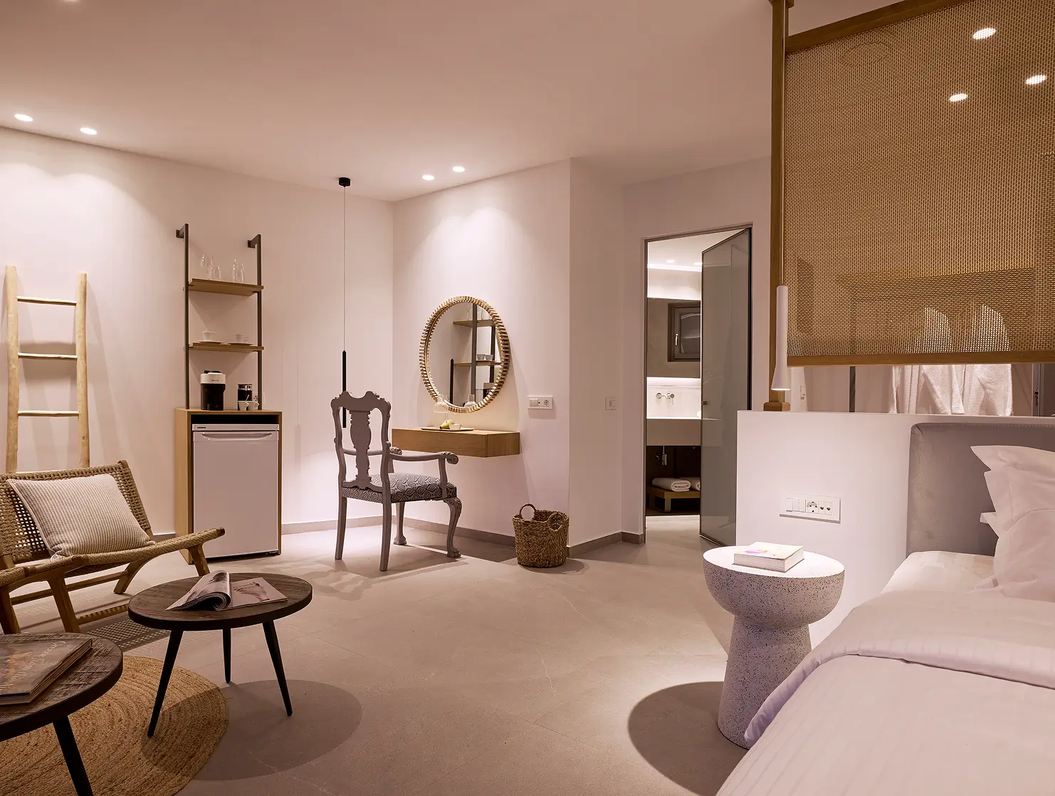 With 45 m² of refined living space and a private pool overlooking the Aegean, the Superior Suite offers the most expansive retreat at Orias. Inside, minimalist lines meet tactile comfort, while outside, uninterrupted views and sunlit serenity define each moment. It’s a suite designed to hold space for presence, for privacy, and for pure escape.